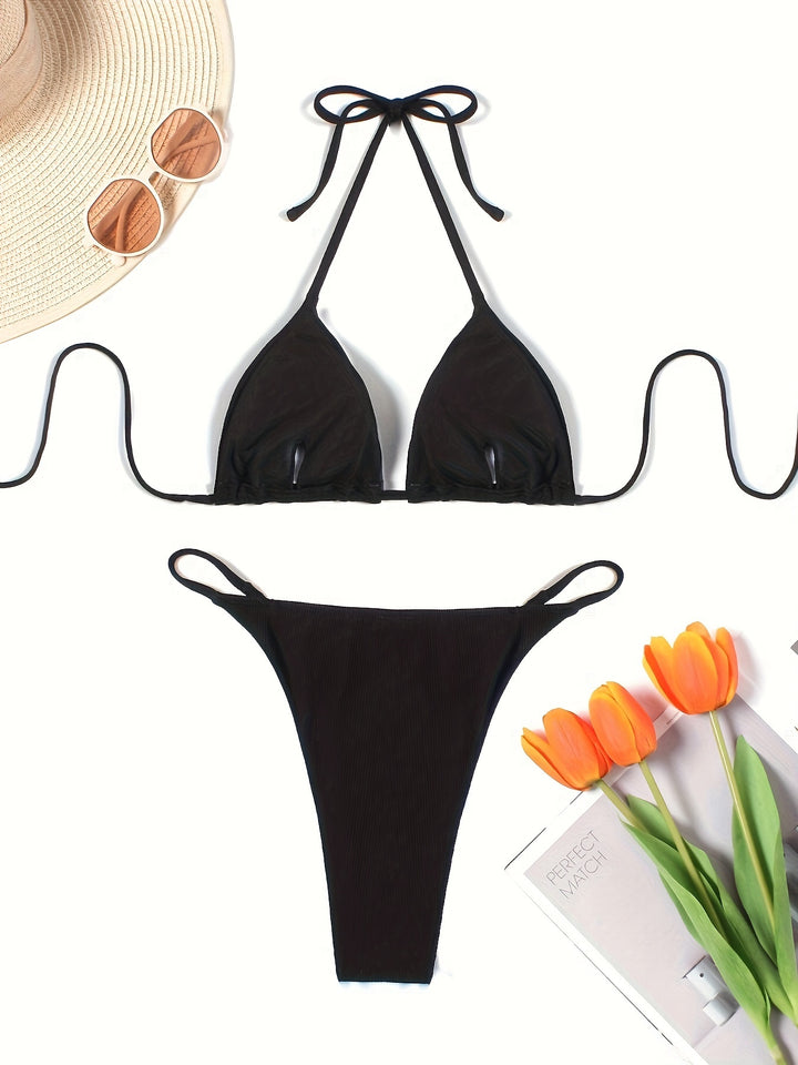 European And American Sexy Solid Color Small Pit Strip Bikini Bikini Holiday Style